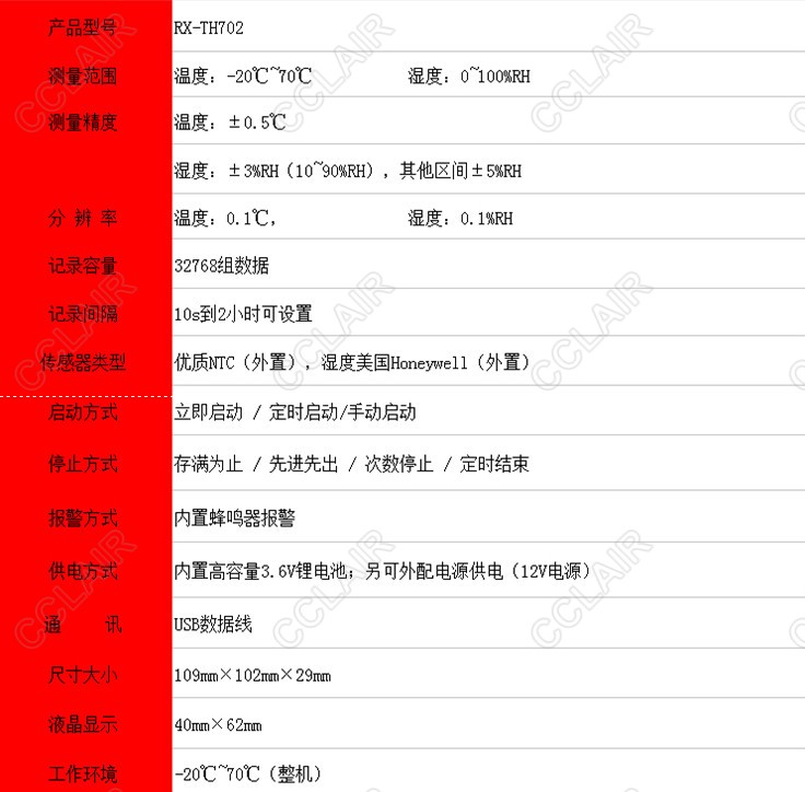 RX-TH702,溫濕度記錄儀