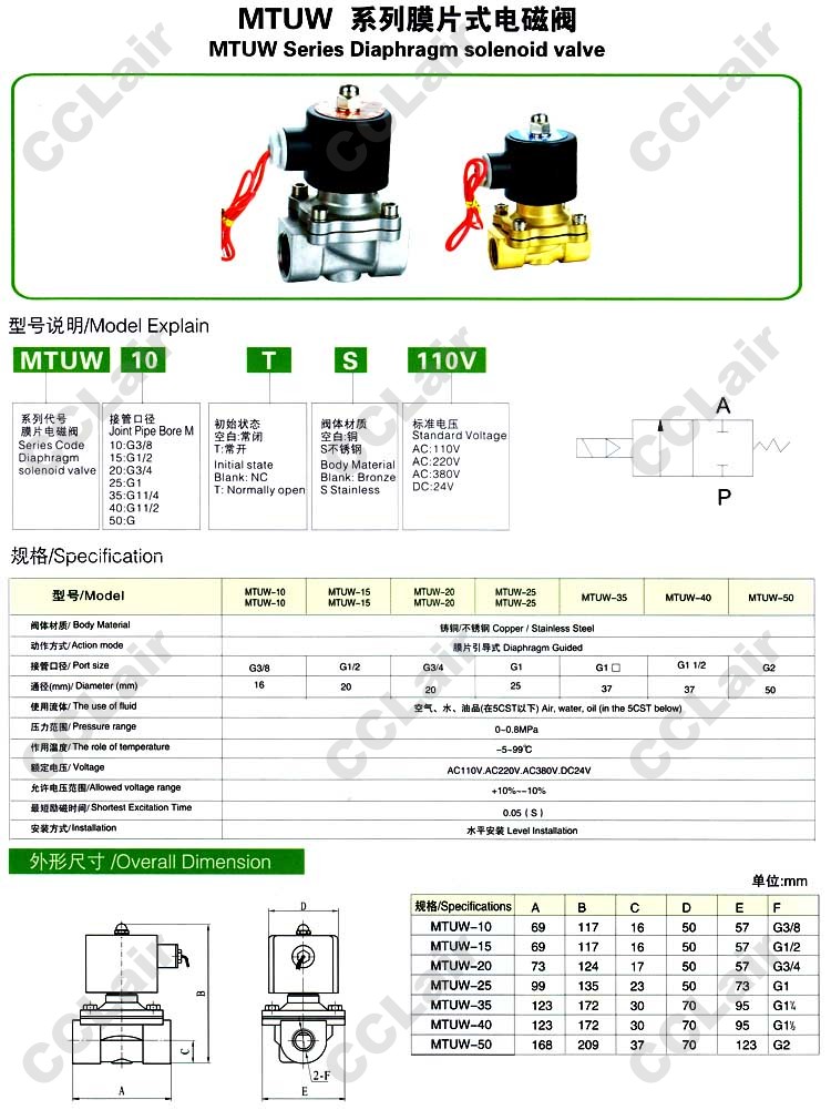 MTUW-10,MTUW-15,MTUW-20,MTUW-25,MTUW-35,MTUW-40,MTUW-50,膜片式電磁閥