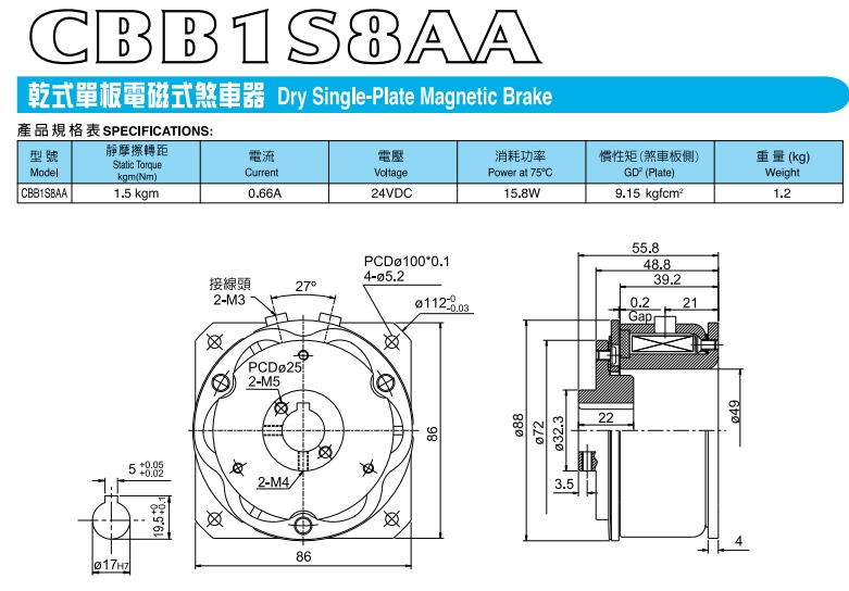 詳細(xì)信息 CBB1S8AA,車床電磁制動(dòng)器