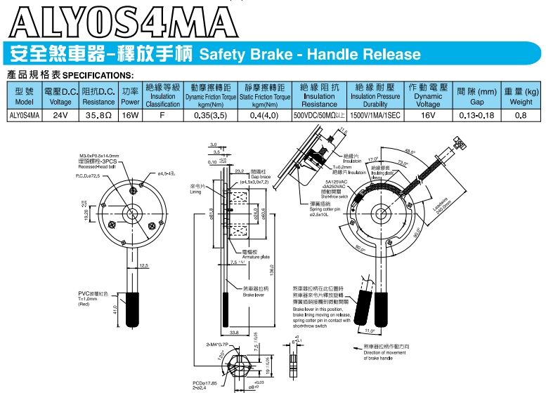 ALY0S4MA,安全剎車(chē)器附釋放手柄