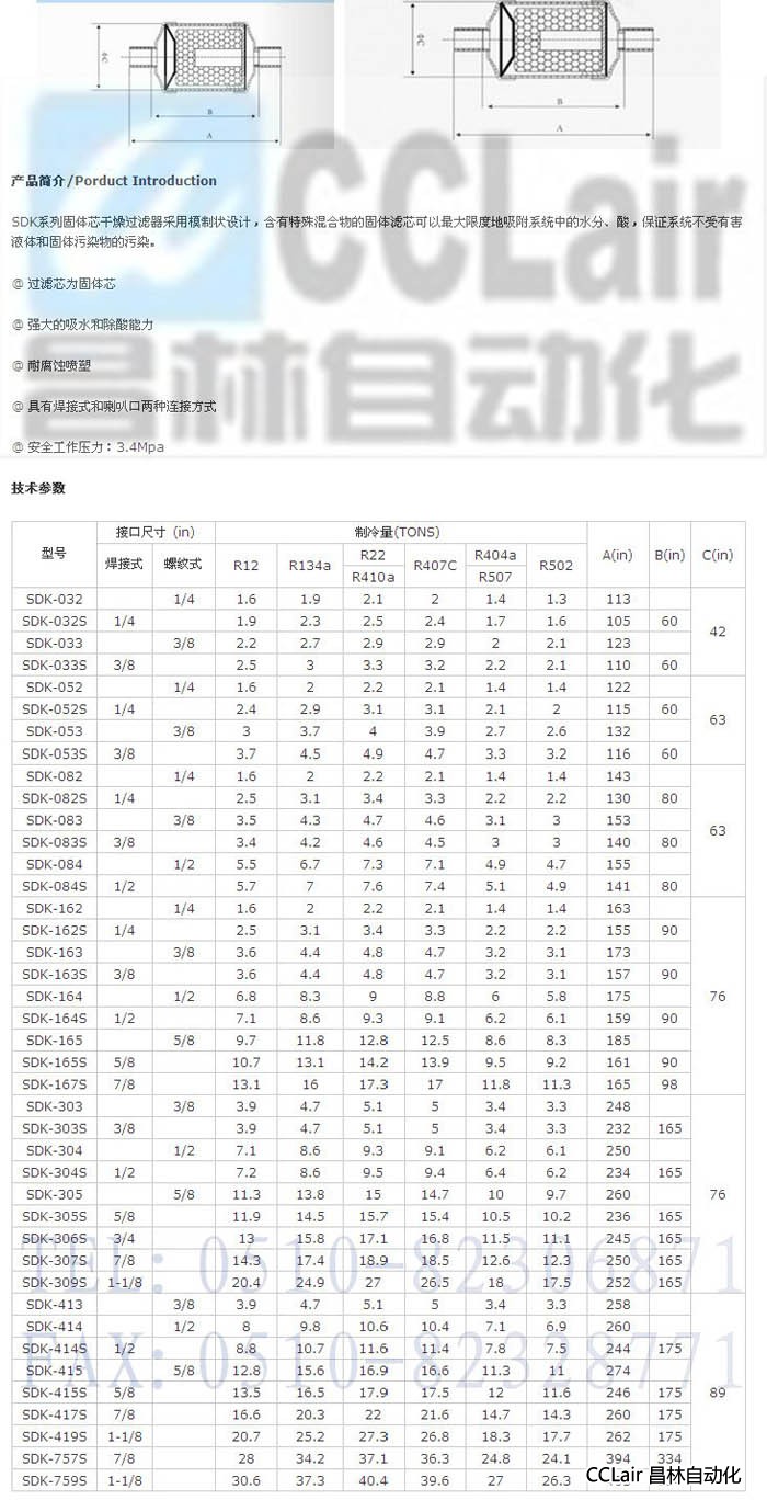 SDK-032,SDK-032S,SDK-033,SDK-033S,固體芯干燥過濾器