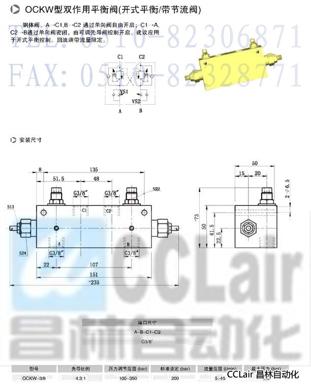 詳細(xì)信息 OCKW-3/8, 雙作用平衡閥(開式平衡/帶節(jié)流閥)