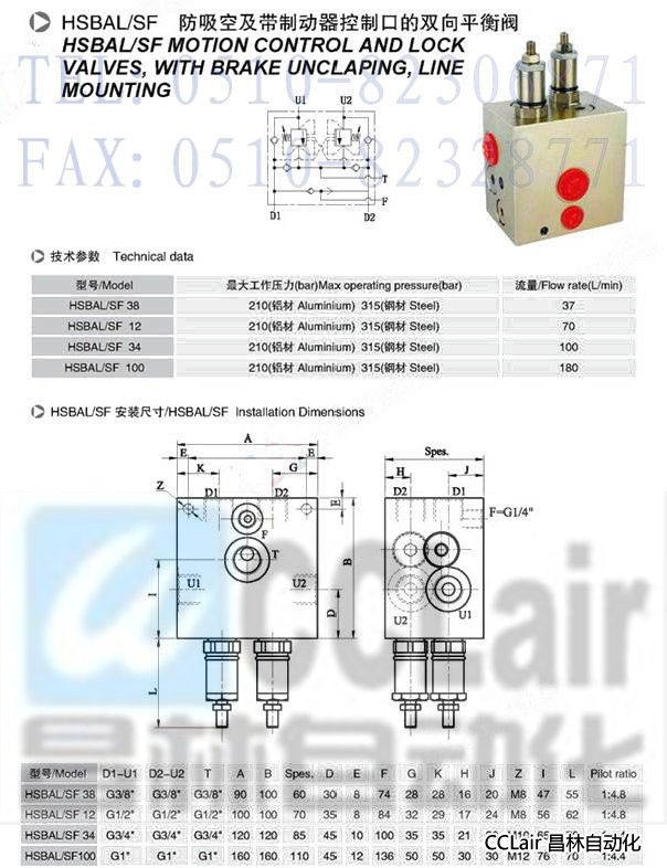 HSBAL/SF 38,HSBAL/SF 12,HSBAL/SF 34,HSBAL/SF 100,防吸空及帶制動器控制口的雙向平衡閥