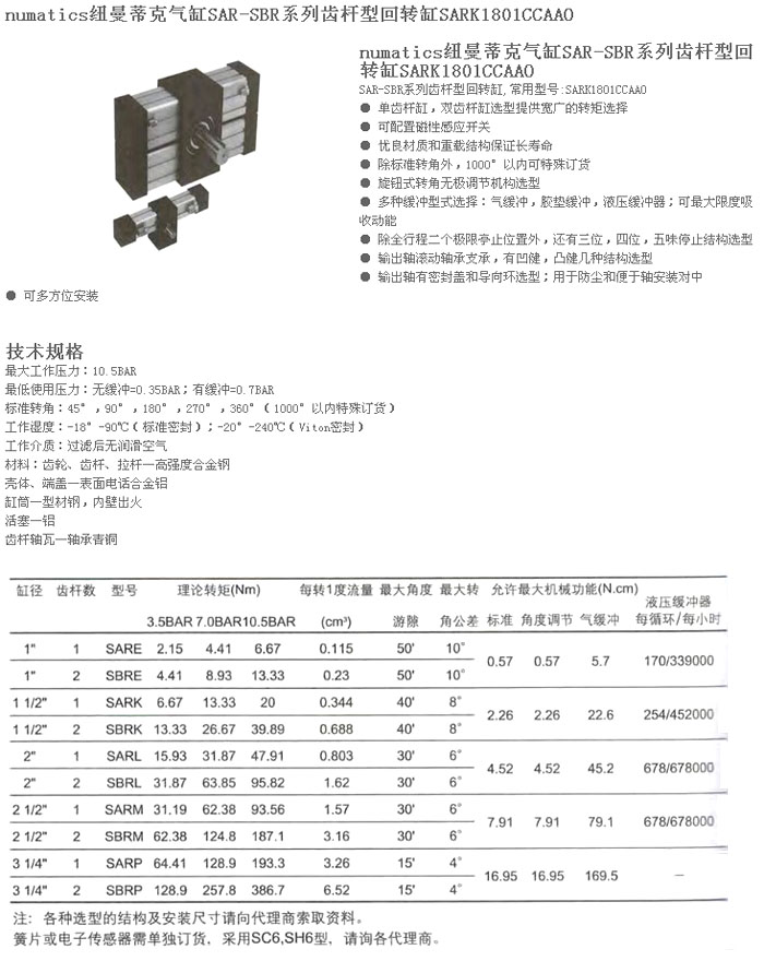 詳細(xì)信息 SARK1801CCAA0,numatics齒輪型回轉(zhuǎn)缸