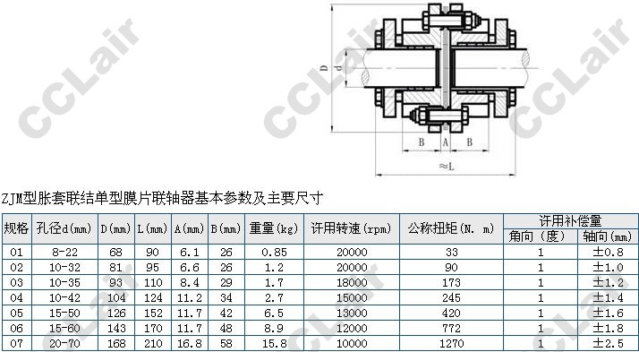 ZJM01,ZJM02,ZJM03,ZJM04,ZJM05,ZJM06,ZJM07,脹套聯(lián)結(jié)單型膜片聯(lián)軸器