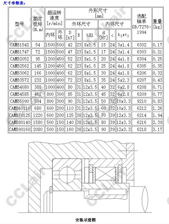 CAMB1542,CAMB1747,CAMB2052,CAMB2562,CAMB3062,CAMB3572,CAMB4080,CAMB4585,CAMB5090,楔塊式單向超越離合器