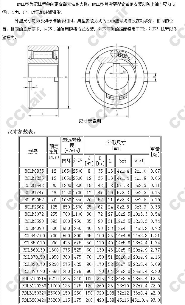 ROLB0835,ROLB1235,ROLB1542,ROLB1747,ROLB2052,ROLB2562,ROLB3072,ROLB3580,ROLB4090,滾柱型單向超越離合器