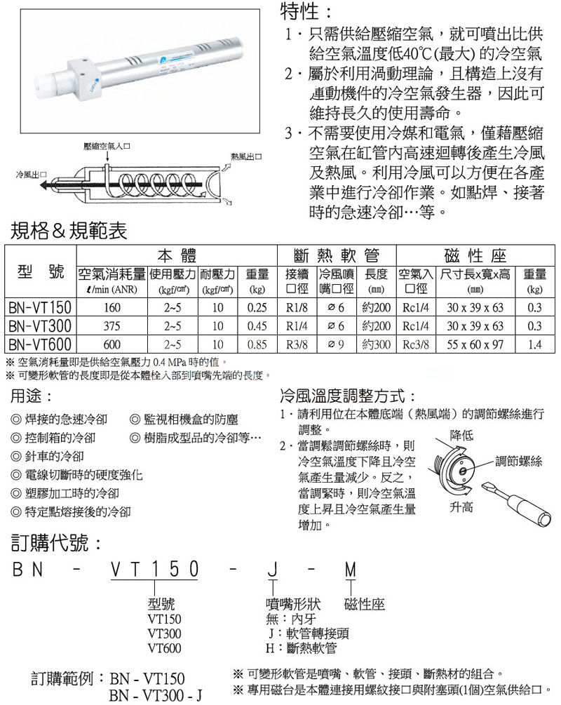 詳細(xì)信息 BN-VT150,BN-VT300,BN-VT600,panix冷空氣發(fā)生器