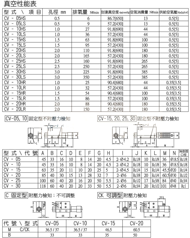 CV-05HS,CV-10HS,CV-15LS,CV-25HS,CV-15HR,CV-20LR,panix真空發(fā)生器