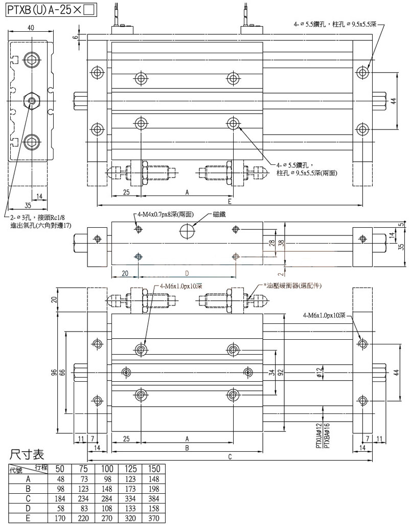 PTXBA-40*50-A-M-2,PTXBA-40*75-A-M-2,PTXBA-40*100-A-M-2,PTXBA-40*125-A-M-2,