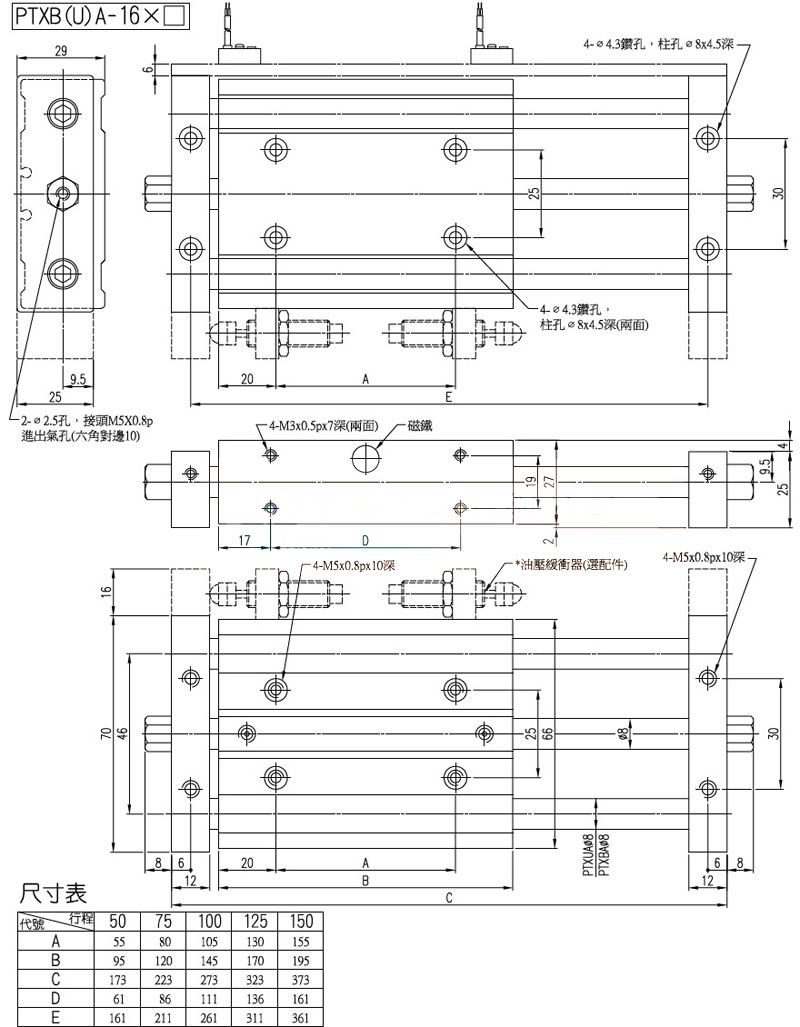 PTXBA-40*150-A-M-2,PTXBA-40*175-A-M-2,PTXBA-40*200-A-M-2,PTXBA-40*225-A-M-2,PTXBA-40*250-A-M-2,