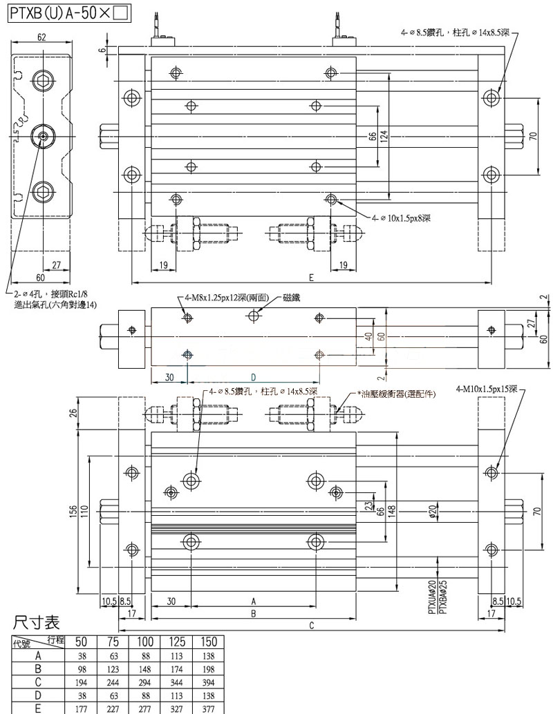 PTXUA-20*50-S-2,PTXUA-20*75-S-2,PTXUA-20*100-S-2,PTXUA-20*125-S-2,PTXUA-20*150-S-2,PTXUA-20*175-S-2,