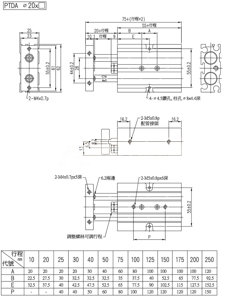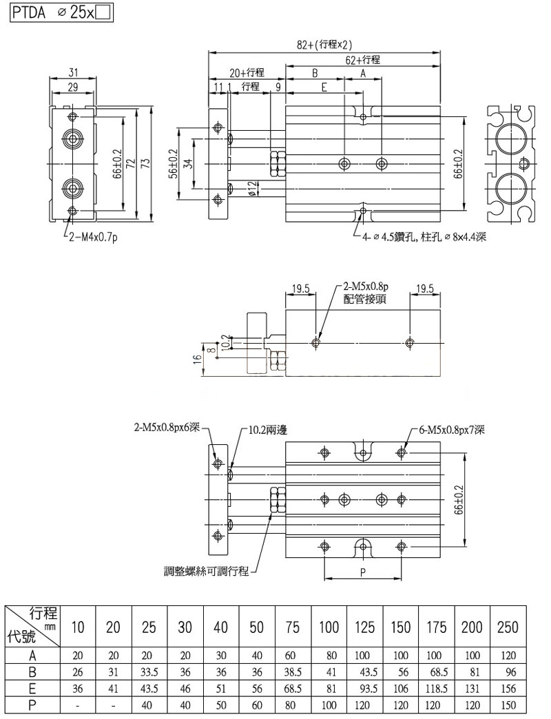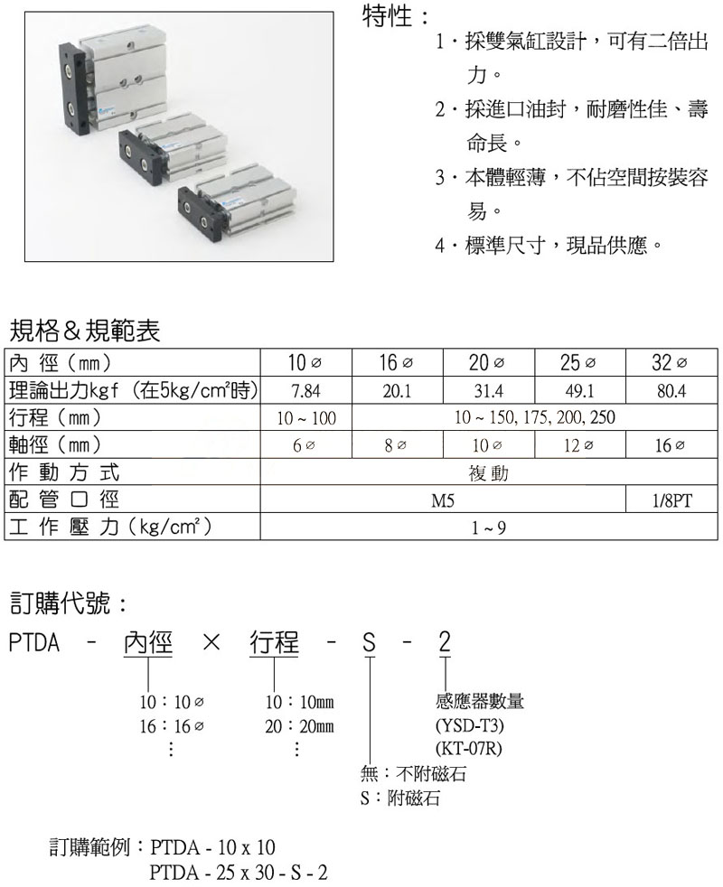 PTDA-10*25,PTDA-16*50,PTDA-20*75,PTDA-25*100,PTDA-32*10,panix雙軸缸