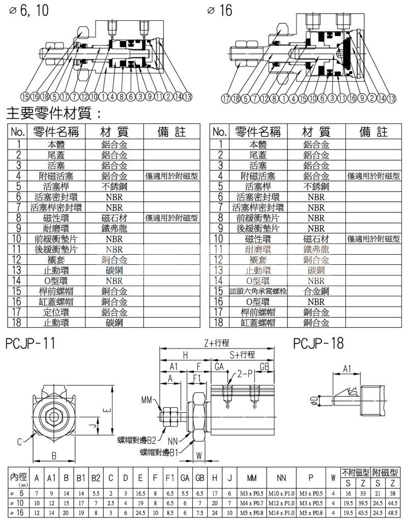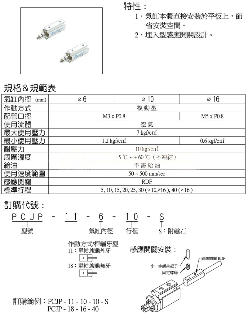 PCJP-11-6,PCJP-11-10,PCJP-11-16,PCJP-18-6,PCJP-18-10,panix復(fù)動(dòng)螺牙氣缸 |