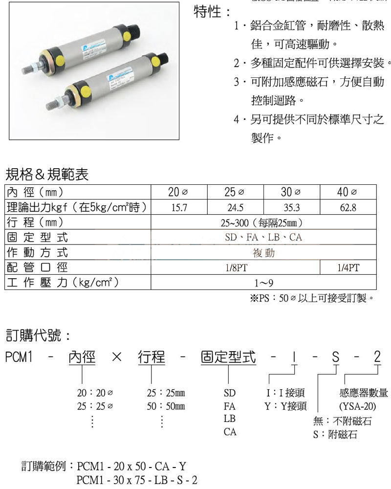 PCM1-20*25,PCM1-25*50,PCM1-30*75,PCM1-40*100,panix迷你鋁合金氣缸 |