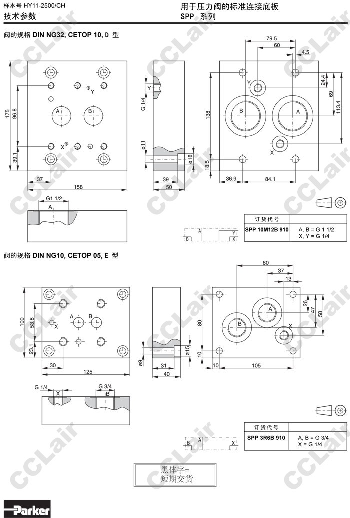 SPP10M12B910,SPP3R6B910,Parker標準連接底板