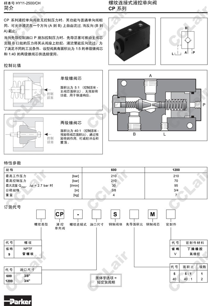 CP-600S5M,CP-600S40M,CP-1200S5M,CP-1200S40M,CP-1200S5MV,CP-1200S40MV,CP-600S5MV,CP-600S40MV,Parker液控