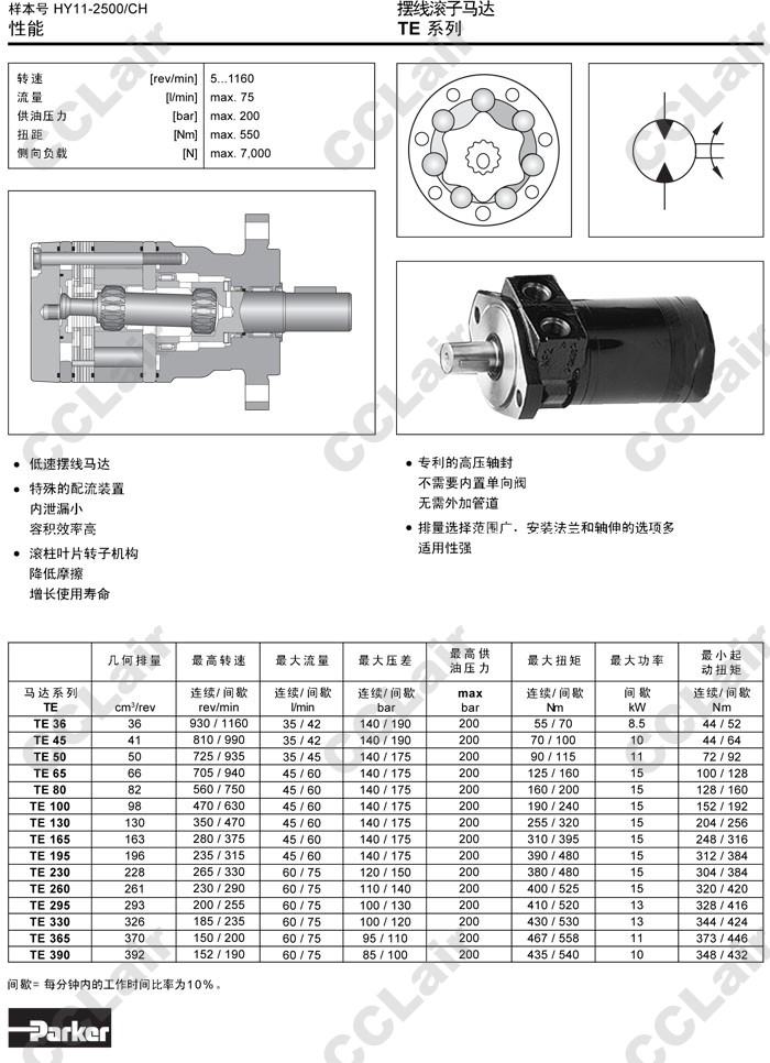 TE0036,TE0045,TE0050,TE0065,TE0080,TE0100,TE0130,Parker擺線滾子馬達