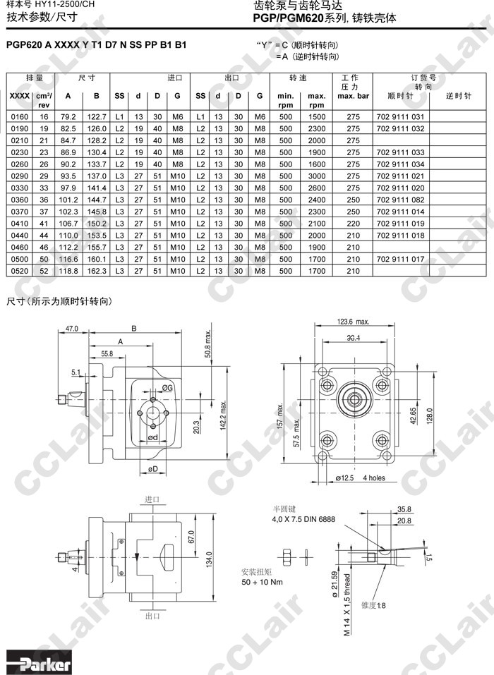 PGM620A,PGM620B,PGM620C,PGM620A0160CC1H2,PGM620B0160CC1H2,PGM620C0160CC1H2,Parker齒輪馬達