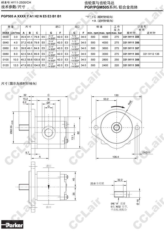 PGP505A,PGP505B,PGP505M,PGP505A0030CA1H1,PGP505M0030CA1H1,PGP505B0030AA1H1,Parker齒輪泵