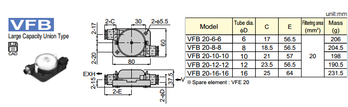 VFB20-6-6,VFB20-12-12,VFB20-16-16,VFB20-8-8,VFB20-10-10,PISCO真空過濾器