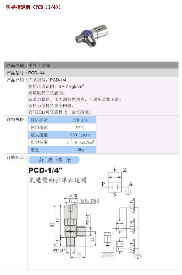 PCD-1/4,POSU引導(dǎo)止逆閥