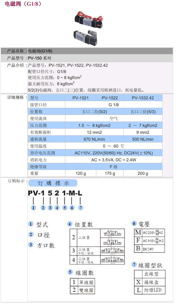 PV-1521,PV-1522,PV-1532,PV-1542,POSU電磁閥