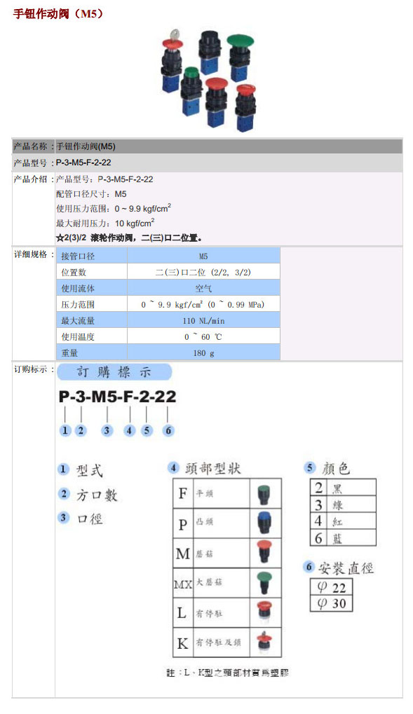P-3-M5-F-2-22,POSU手鈕作動閥