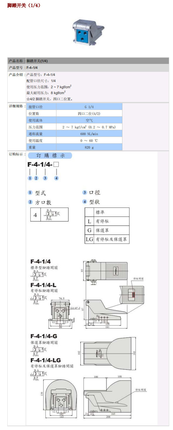 F-4-1/4,F-4-1/4-L,F-4-1/4-G,F-4-1/4-LG,PST腳踏開(kāi)關(guān)