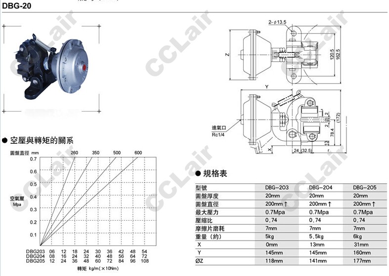 詳細(xì)信息 DBG-203,DBG-204,DBG-205,碟式制動器,CCLair