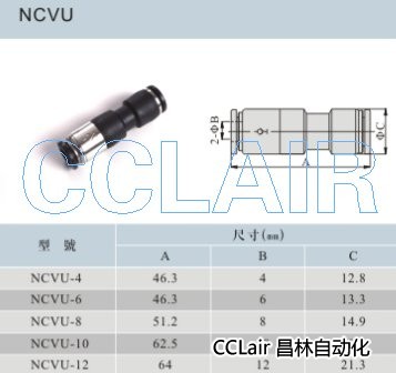 詳細(xì)信息 NCVU-4,NCVU-6,NCVU-8,NCVU-10,NCVU-12,接頭