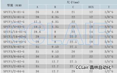 SPCF1/8-01-G,SPCF1/4-02-G,SPCF5/16-01-G,SPCF3/8-01-G,SPCF1/2-04-G,接頭