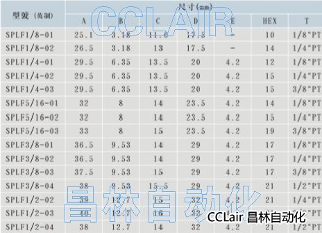 SPLF1/8-01,SPLF1/8-02,SPLF1/4-02,SPLF5/16-01,SPLF3/8-01,SPLF3/8-03,SPLF1/2-04,接頭