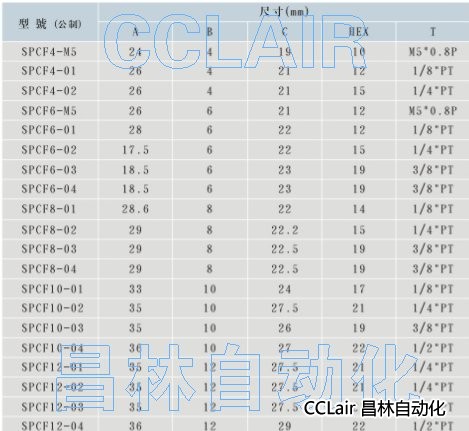 詳細信息 SPCF4-M5,SPCF4-01,SPCF4-02,SPCF6-01,SPCF6-02,SPCF8-03,SPCF10-04,SPCF12-01,接頭
