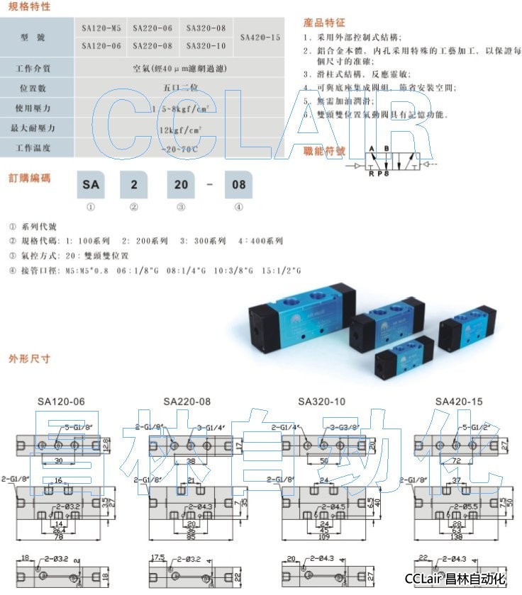 SA320-08,SA420-10,SA420-15,SA320-M5,SA420-M5,SA320-06,SA420-06,雙頭雙位氣動閥