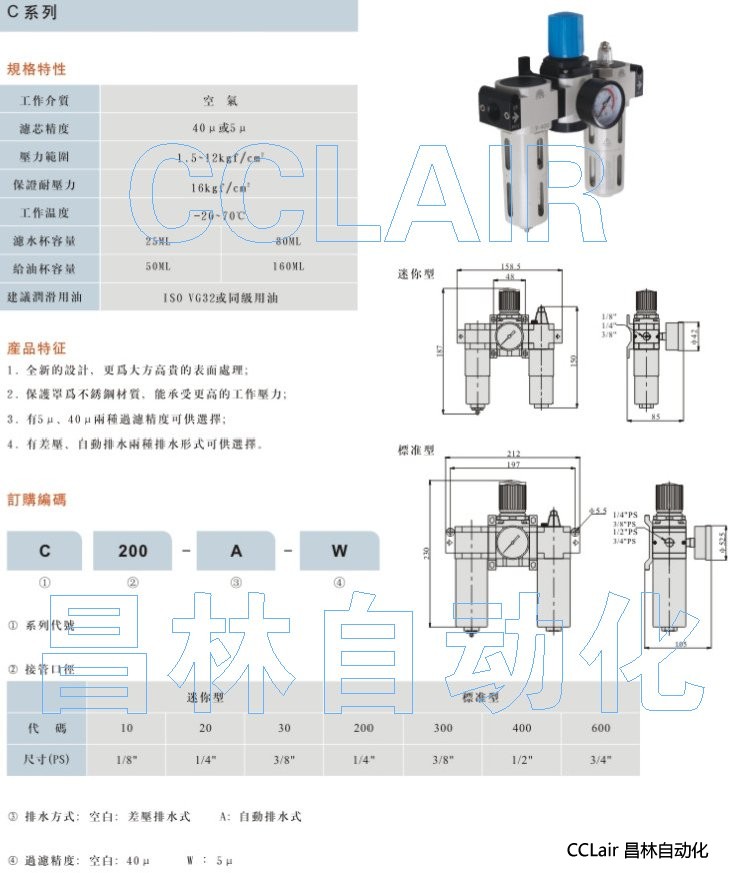 詳細(xì)信息 FC10-A-W,FC20-A-W,FC30-A-W,FC200-A-W,FC300-A-W,FC400-A-W,FC600-A-W,空氣調(diào)理組合