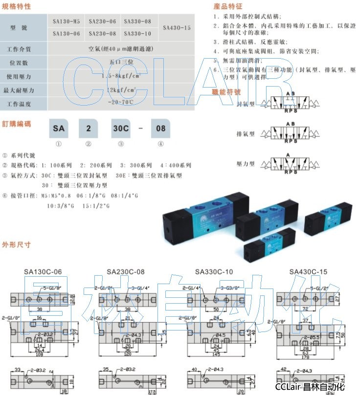 SA130C-M5,SA230C-06,SA230C-M5,SA330C-M5,SA430C-M5,SA130C-06,雙頭三位氣動(dòng)閥