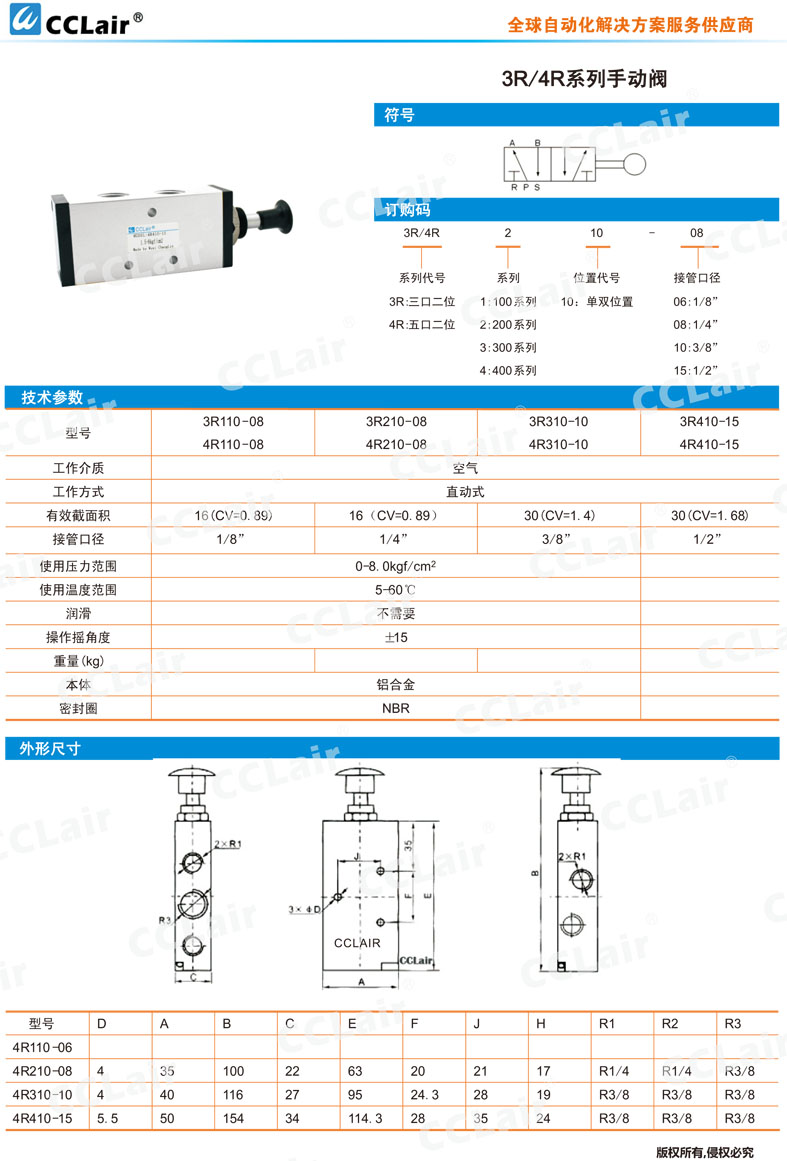3R110-08,3R210-08,3R310-10,3R410-15,4R110-08,4R210-08,4R310-10,4R410-15,手動(dòng)閥