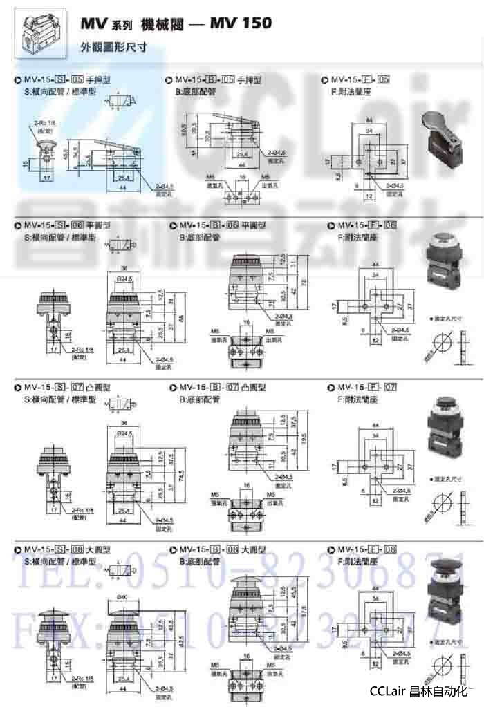 MV-15S-01,MV-15S-02,MV-15S-03,MV-15S-04,MV-15S-05,三口二位機械閥