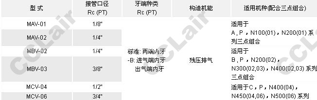 氣立可(chelic),MAV--01,MAV-02,MBV-02,MBV-03,MCV-04,MCV-06,氣源開關(guān)