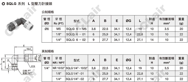 氣立可(chelic),SQLG6-M5,SQLG6-01,SQLG6-02,SQLG1/4-10/32,SQLG1/4-01,SQLG1/4-02,壓力計(jì)接頭