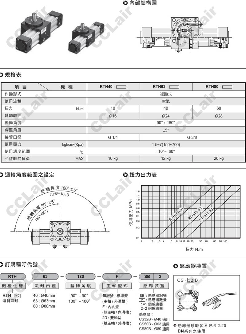 氣立可(chelic),RTH63-90,RTH63-180,RTH80-90,RTH80-180,RTH40-90-SB2,RTH40-180-F-SB2,回轉(zhuǎn)氣缸