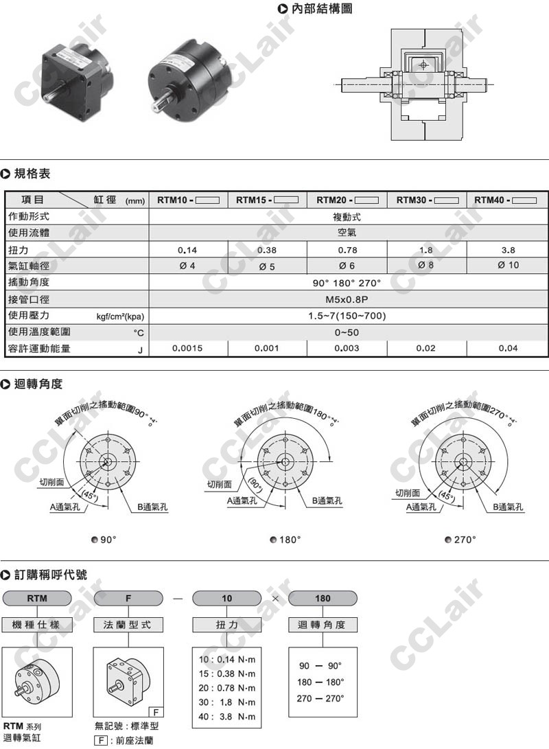 氣立可(chelic),RTM10-90,RTM15,RTM20,RTM30,RTM40,RTMF10,RTMF15,RTMF20,RTMF30,RTMF40,回轉(zhuǎn)氣缸 |