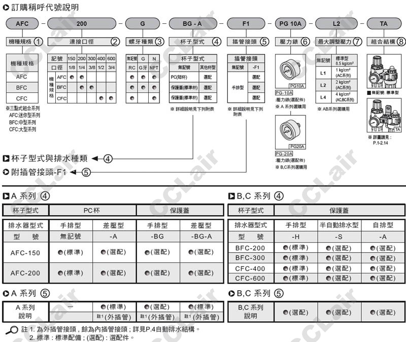 氣立可(chelic),AFC-150,AFC-200,BFC-200,BFC-300,CFC-400,CFC-600,AFC-150-G-BG-A-F1-PG10A,