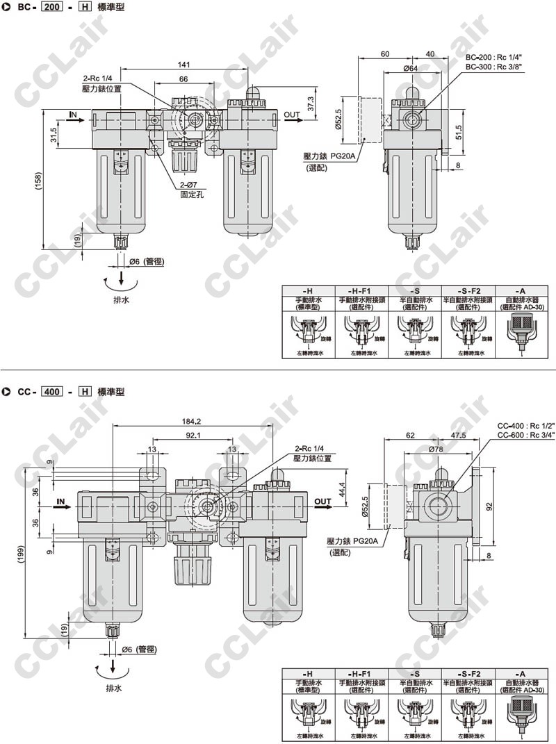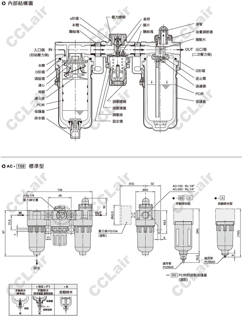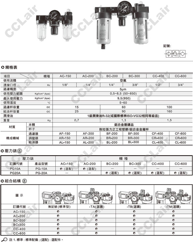 型號(hào): 氣立可(chelic),AC-150,AC-200,BC-200,BC-300,CC-400,CC-600,AC-150-G-BG-A-F1-PG10A