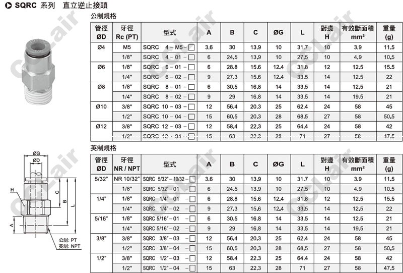 氣立可(chelic),SQRC4-M5,SQRC6,SQRC8,SQRC10,SQRC12,SQRC5/32,SQRC1/4,SQRC5/16,SQRC3/8,SQRC1/2,