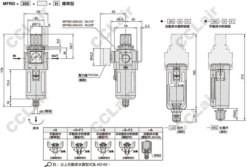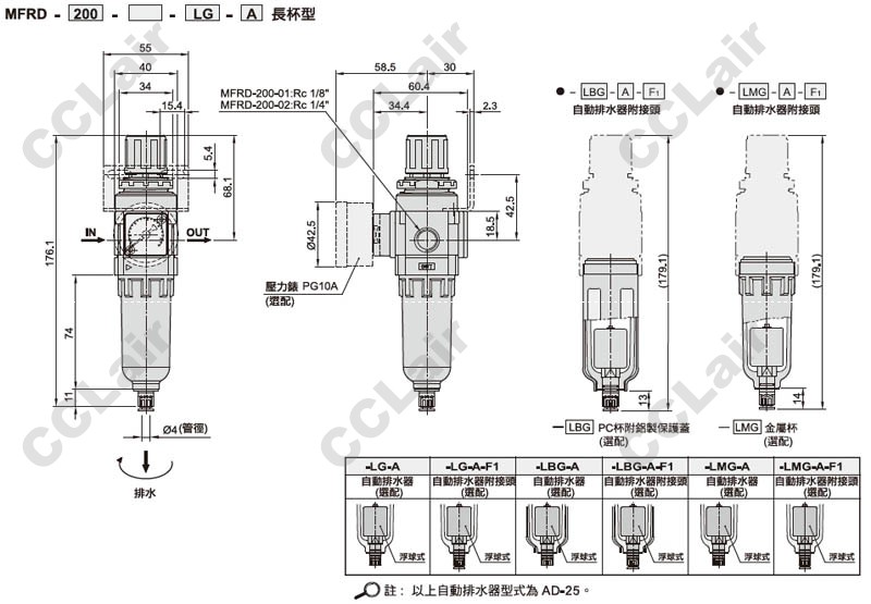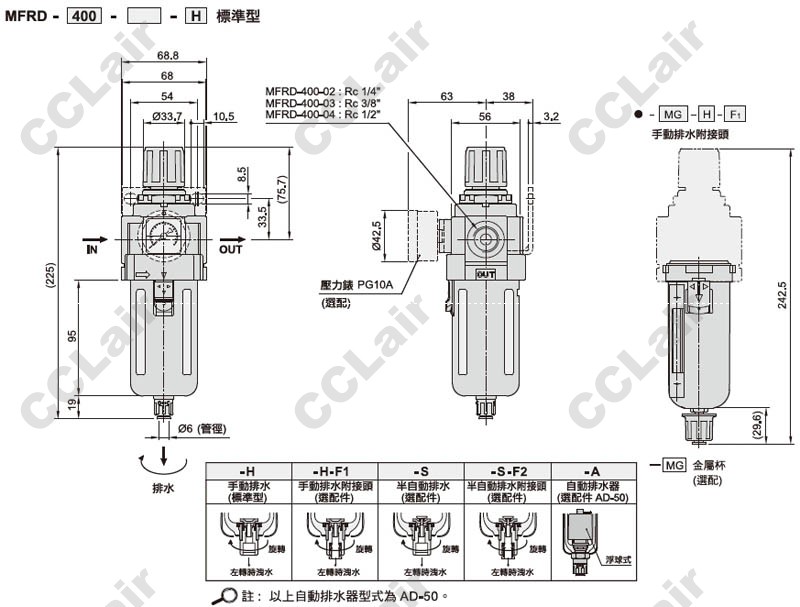 型號: 氣立可(chelic),MFRD-200,MFRD-300,MFRD-400,MFRD-450,MFRD-500,MFRD-200-01-G-H-F1-C,MFRD-300-03-G-H-F1-C