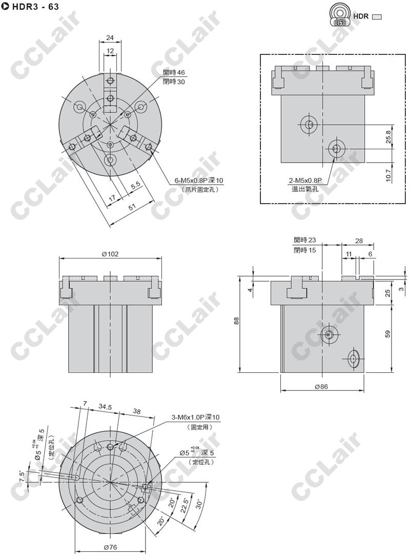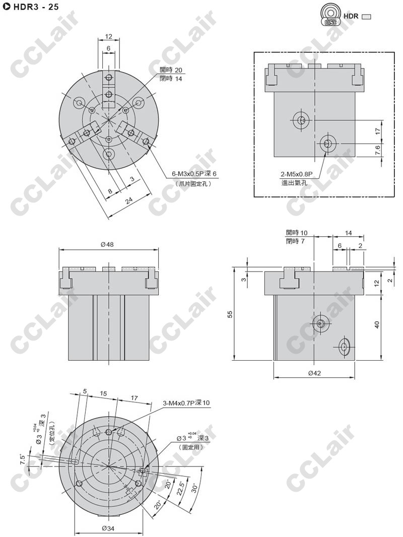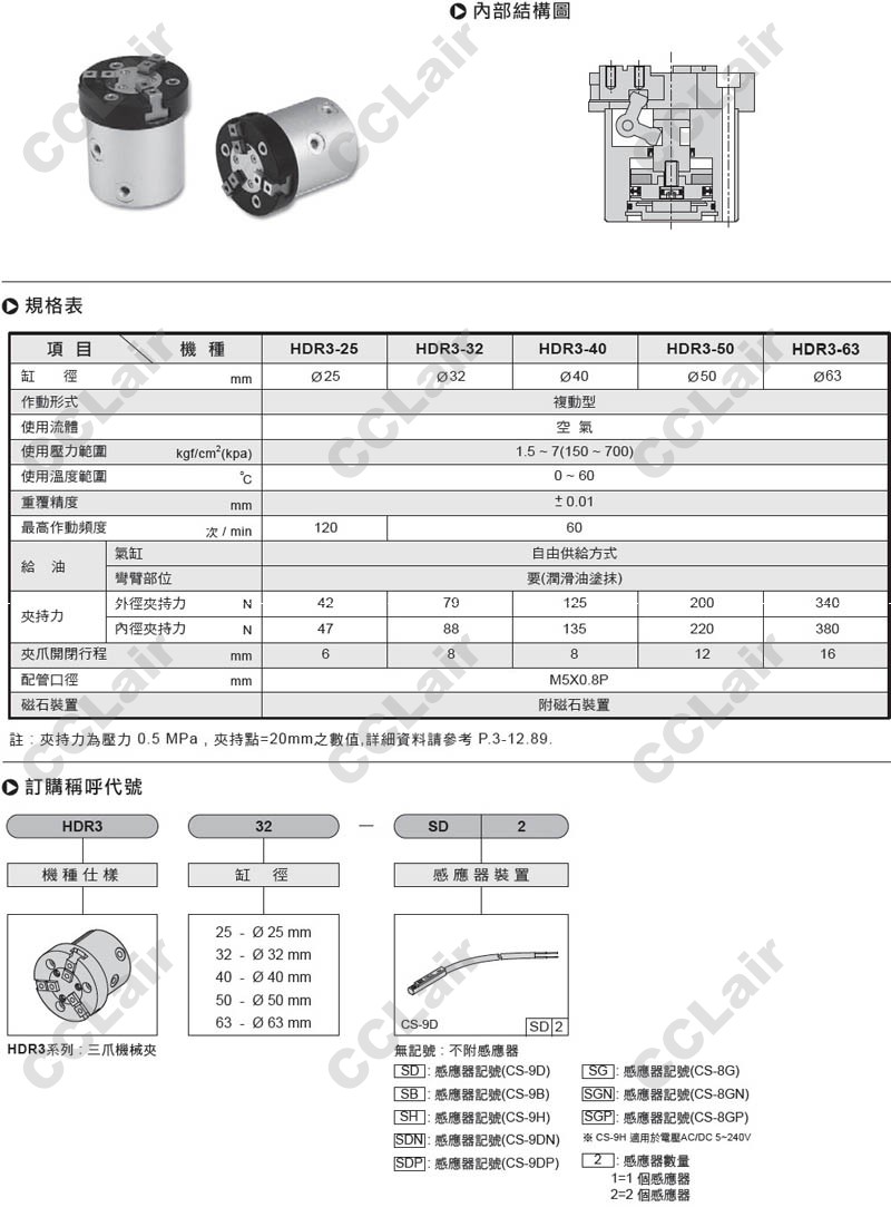 氣立可(chelic),HDR3-25-SD2,HDR3-32,HDR3-40,HDR3-50,HDR3-63,HDR325-SD2,HDR332-SD2,三爪機(jī)械夾