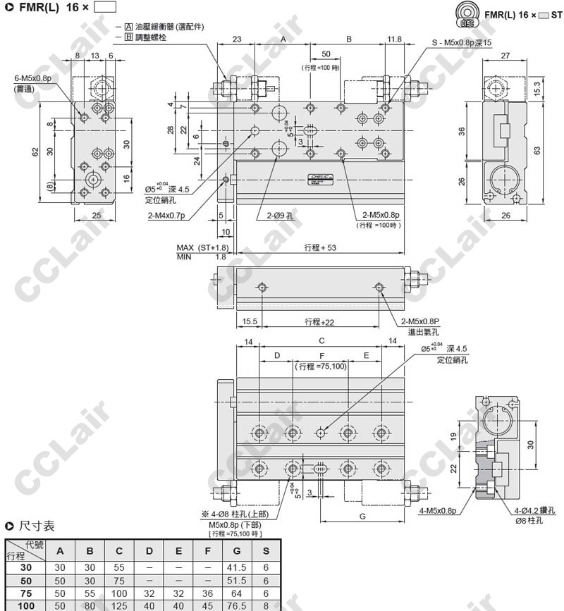 FMR10*30-SD2,FMR10*50-SD2,FMR16*30-SD2,FMR16*50-SD2,FMR16*75-SD2,FMR16*100-SD2,滑座氣缸