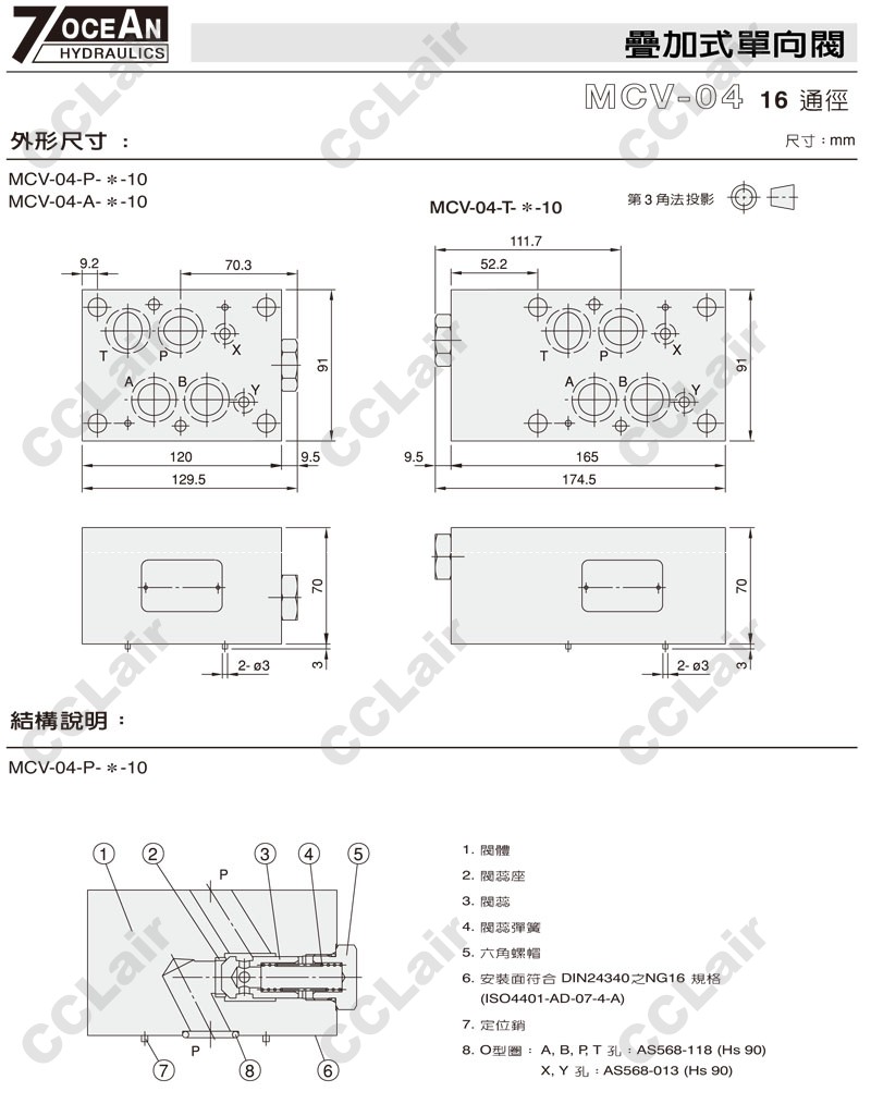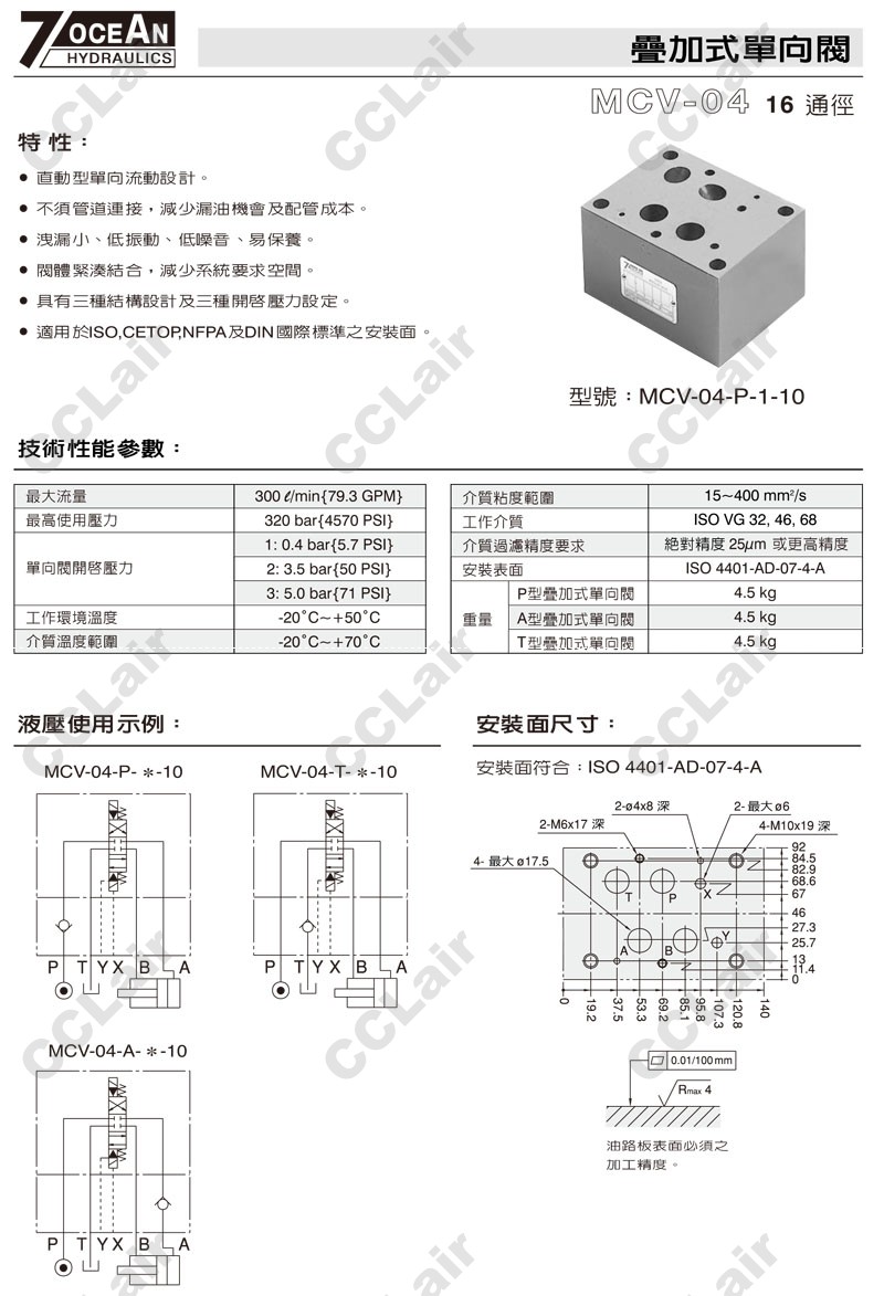 MCV-04-P,MCV-04-T,MCV-04-A,MCV-04-P-3-10,MCV-04-T-1-10,MCV-04-A-2-10,7OCEAN七洋疊加式單向閥